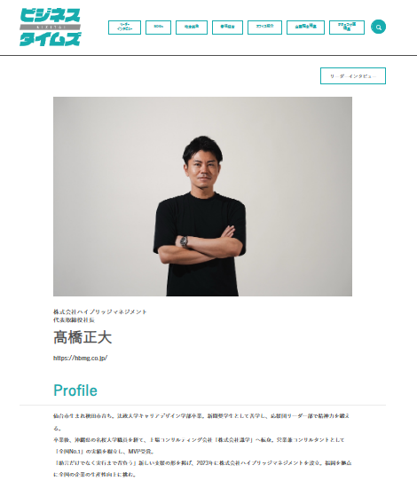 弊社・株式会社ハイブリッジマネジメント 代表取締役社長 髙橋正大のインタビュー記事が掲載されました。